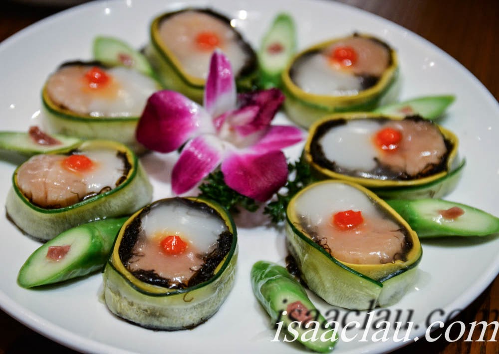 懷念東閣藏經之餘,亦不能原地踏步,新創的發財鴛鴦寶賣相漂亮,以蒸的方式貫徹原味原汁風格,試真一點才曉得是乾和鮮的帆立貝組成,乾瑤柱味道濃郁,而鮮帆立貝淡麗卻軟嫩,可說一次滿足兩個願望,更值得欣賞是師傅連配套亦不馬虎,伴碟的露筍尖竟釀入金腿,這道藝術料理該吸引到嘴饞的大家試試?